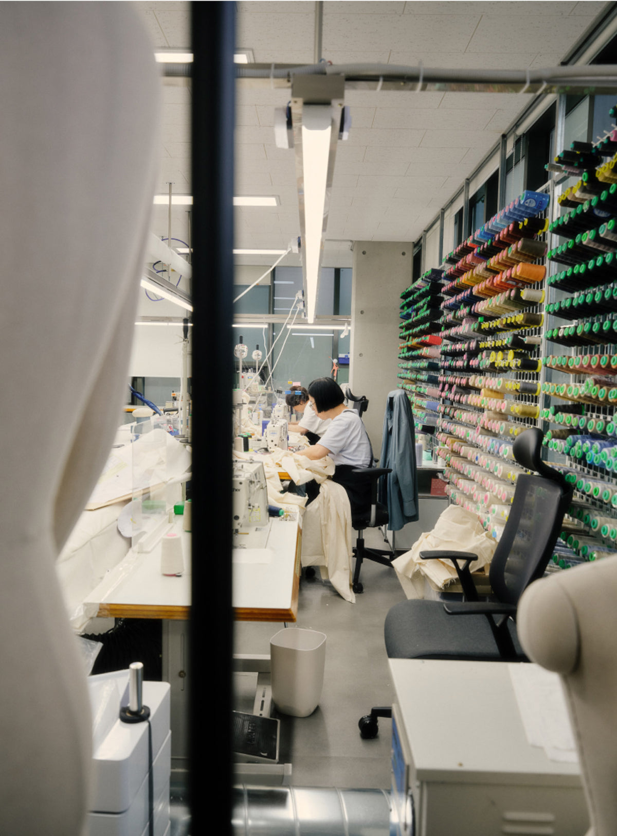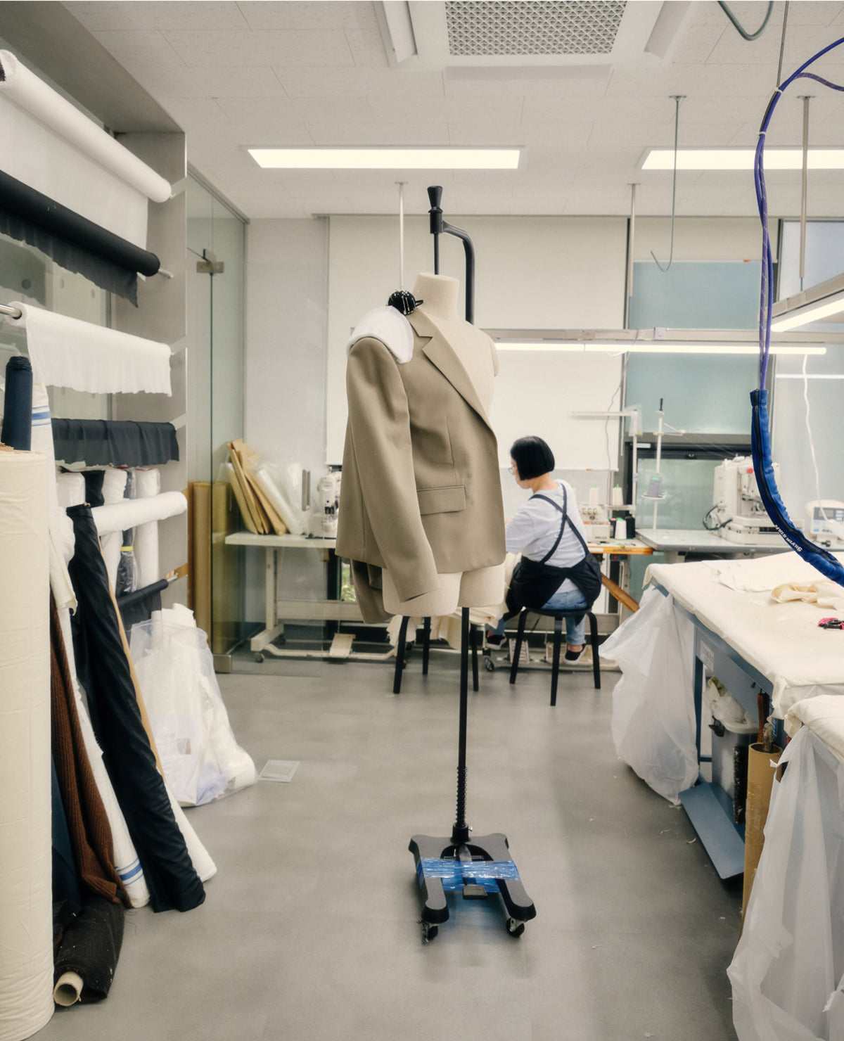 Saeyeon is fastidious about subtle, iterative improvements: “Innovation doesn’t have to be loud. Sometimes it’s a seam you don’t see or a fabric that behaves unexpectedly. I try to innovate through construction, silhouette and texture in a way that feels subtle but fresh.” She is drawn to natural fibres, “especially those with texture or irregularities – raw silk, crumpled cotton, vintage leather. These are materials that feel like they’ve lived a life.”