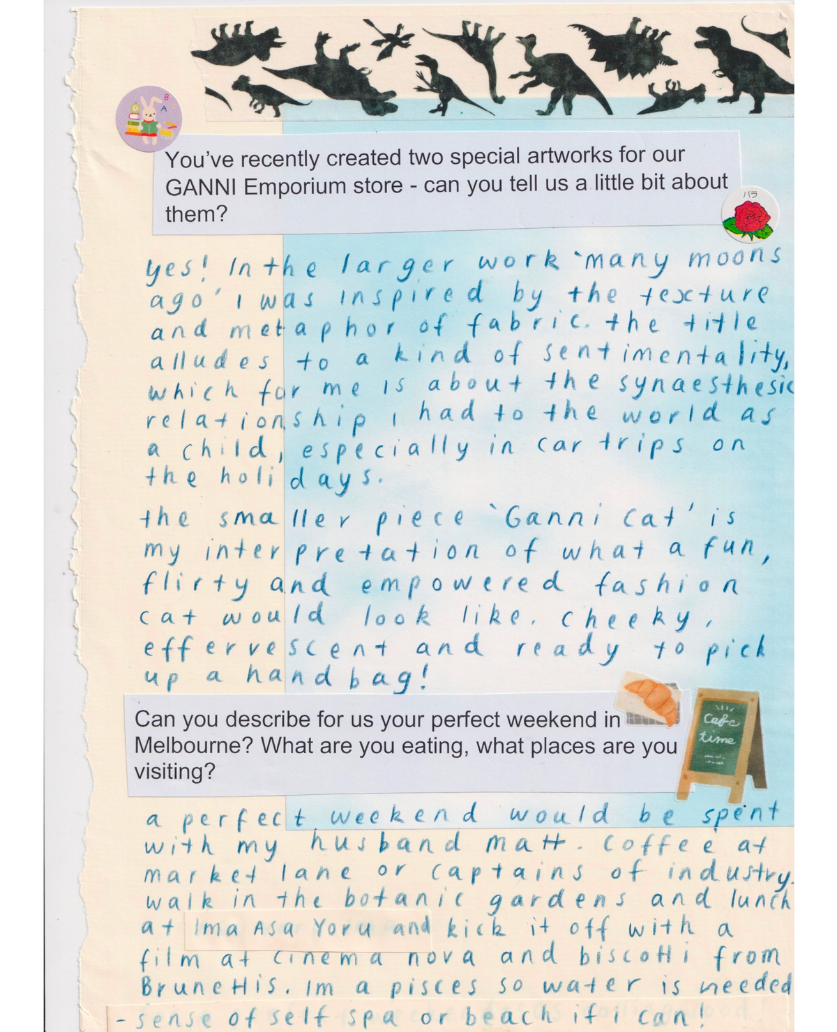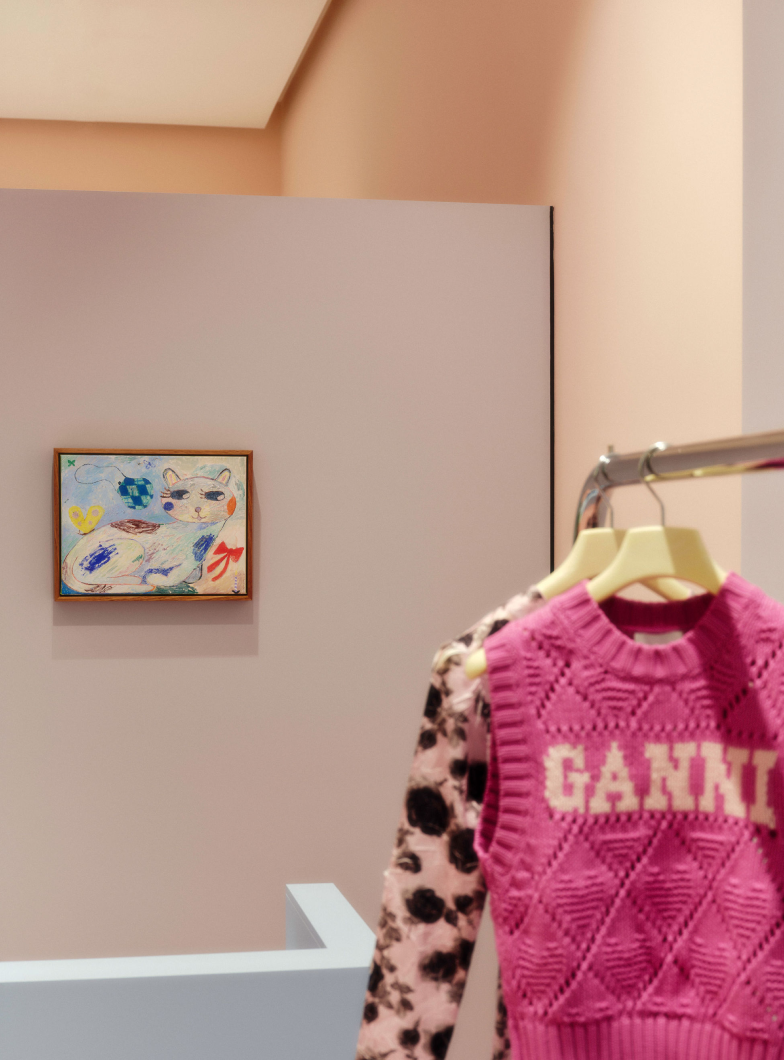Melbourne based artist Morgan Blue was handpicked by the GANNI team to create two unique artworks for the store. Morgan’s playful and colourful aesthetic was the perfect compliment to the store - and is now a much loved talking point for visitors!