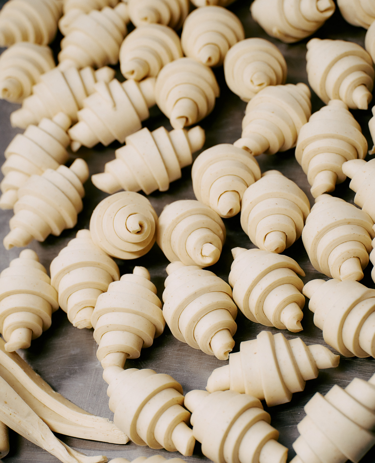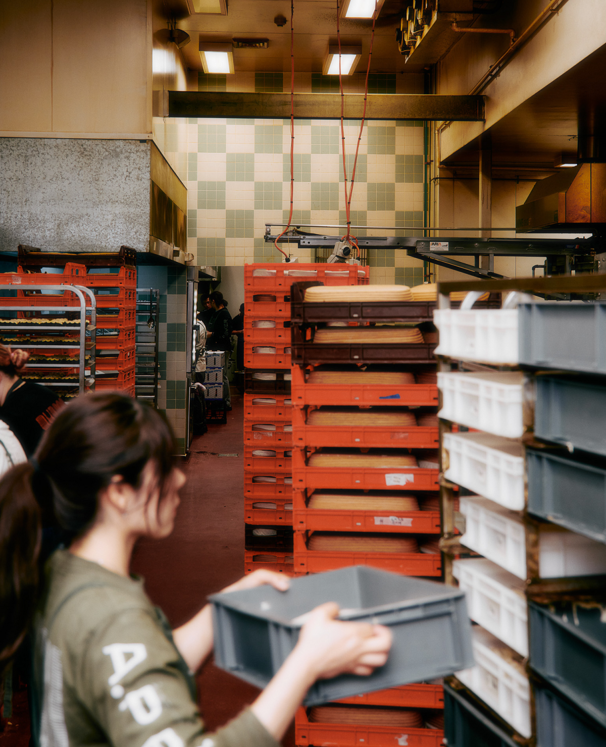 Baguettes and ficelle (aka the skinny baguette) are shaped until 4.30am. Focaccias and flatbreads are next. And then the pastry team starts captaining the ovens. Each morning’s a hard-to-pull-off ballet. “We’ve talked about it a lot – bringing in different pieces of equipment to roll the baguettes,” Dougal says. “One of my favourite things to do at the bakery is shape baguettes and sit around and talk shit while we do it. When that comes together, working in a team of bakers, it’s just such a beautiful symphony.”
