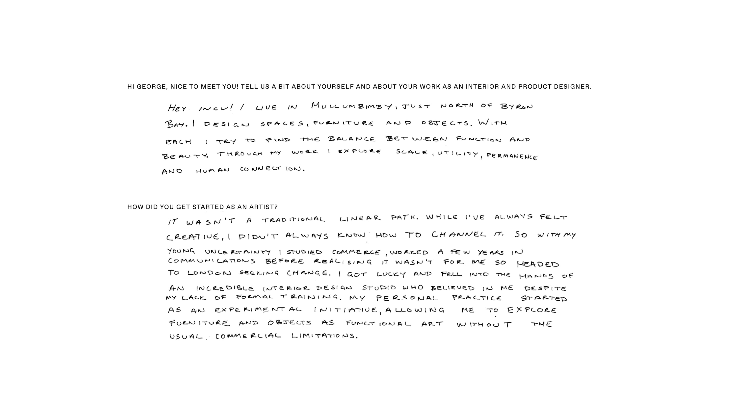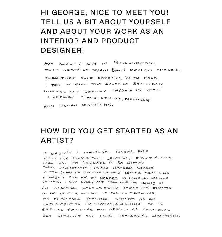 We caught up with George after our photoshoot at Hake House, in Sydney’s Northern Beaches, and learned more about her work and creative influences.